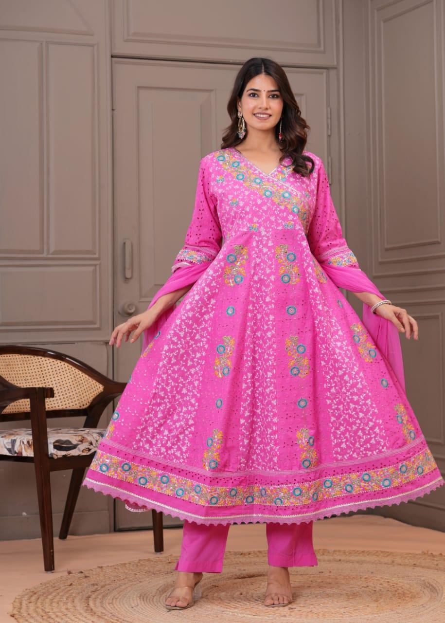 ANARKALI SUIT SET WITH DUPATTA..FEBRIC-COTTON