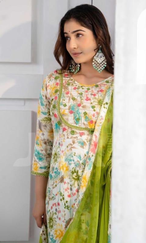 MRP-2020- SELL PRICE-1515 SIZE M L XL XXL -2 COLOUR FEBRIC- RAYON- PETTERN - FROCK SUIT SET WITH DUPATTA-BRAND JSR
