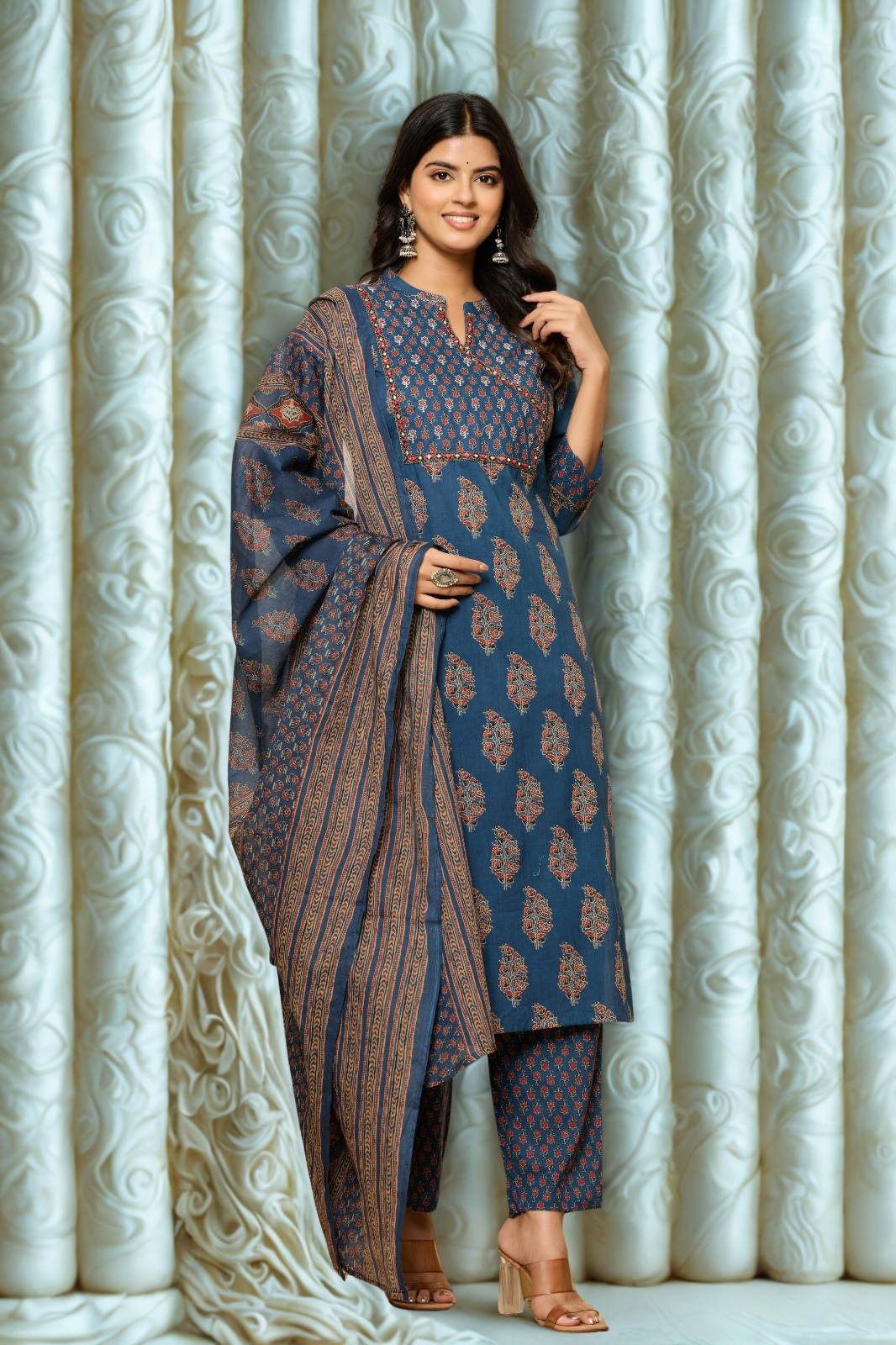 MRP-2280- SELL PRICE-1596 SIZE M L XL XXL -3 COLOUR FEBRIC- COTTON- PETTERN - FROCK SUIT SET WITH DUPATTA-
