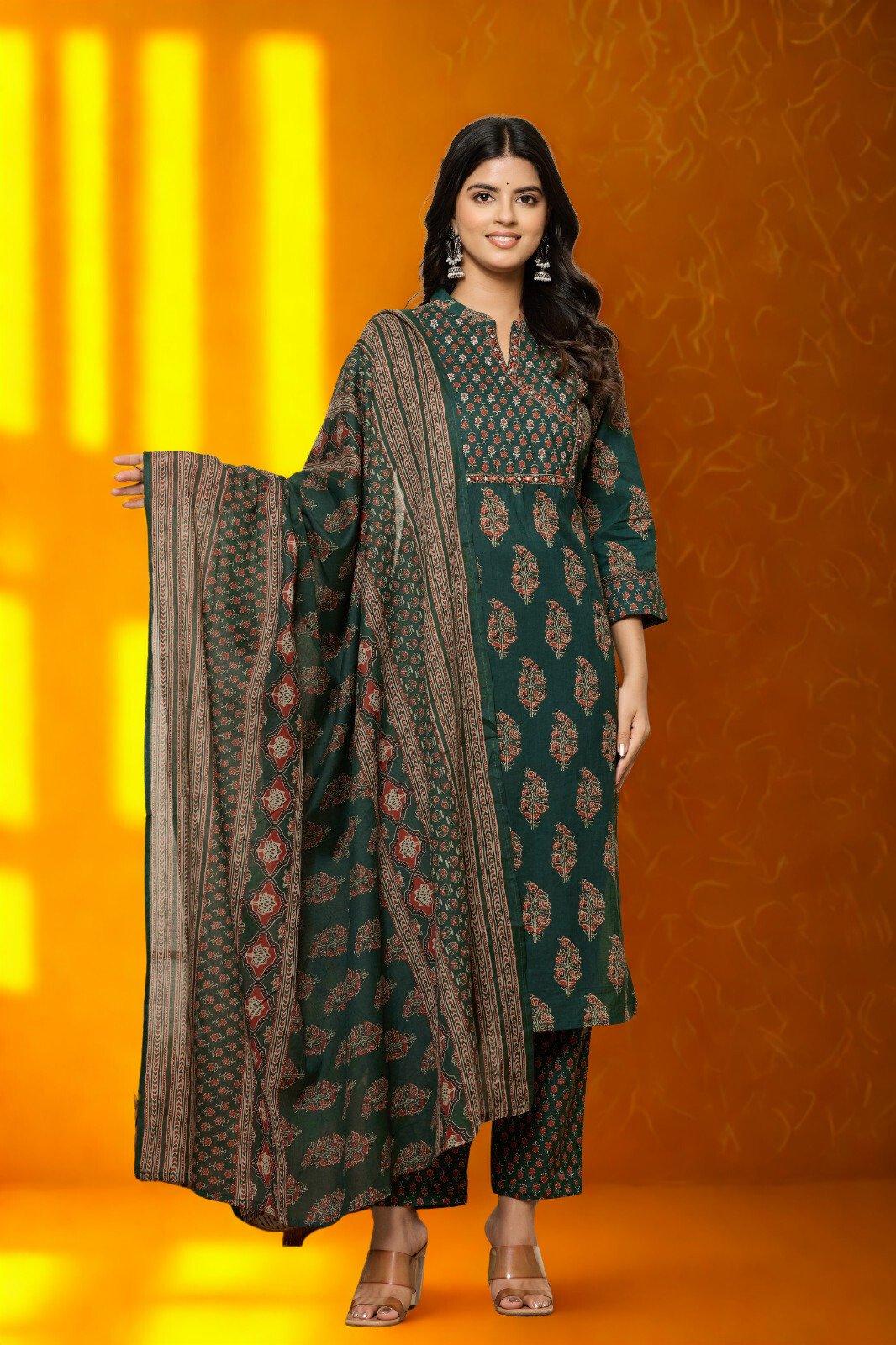 MRP-2280- SELL PRICE-1596 SIZE M L XL XXL -3 COLOUR FEBRIC- COTTON-  PETTERN - FROCK SUIT SET WITH DUPATTA-