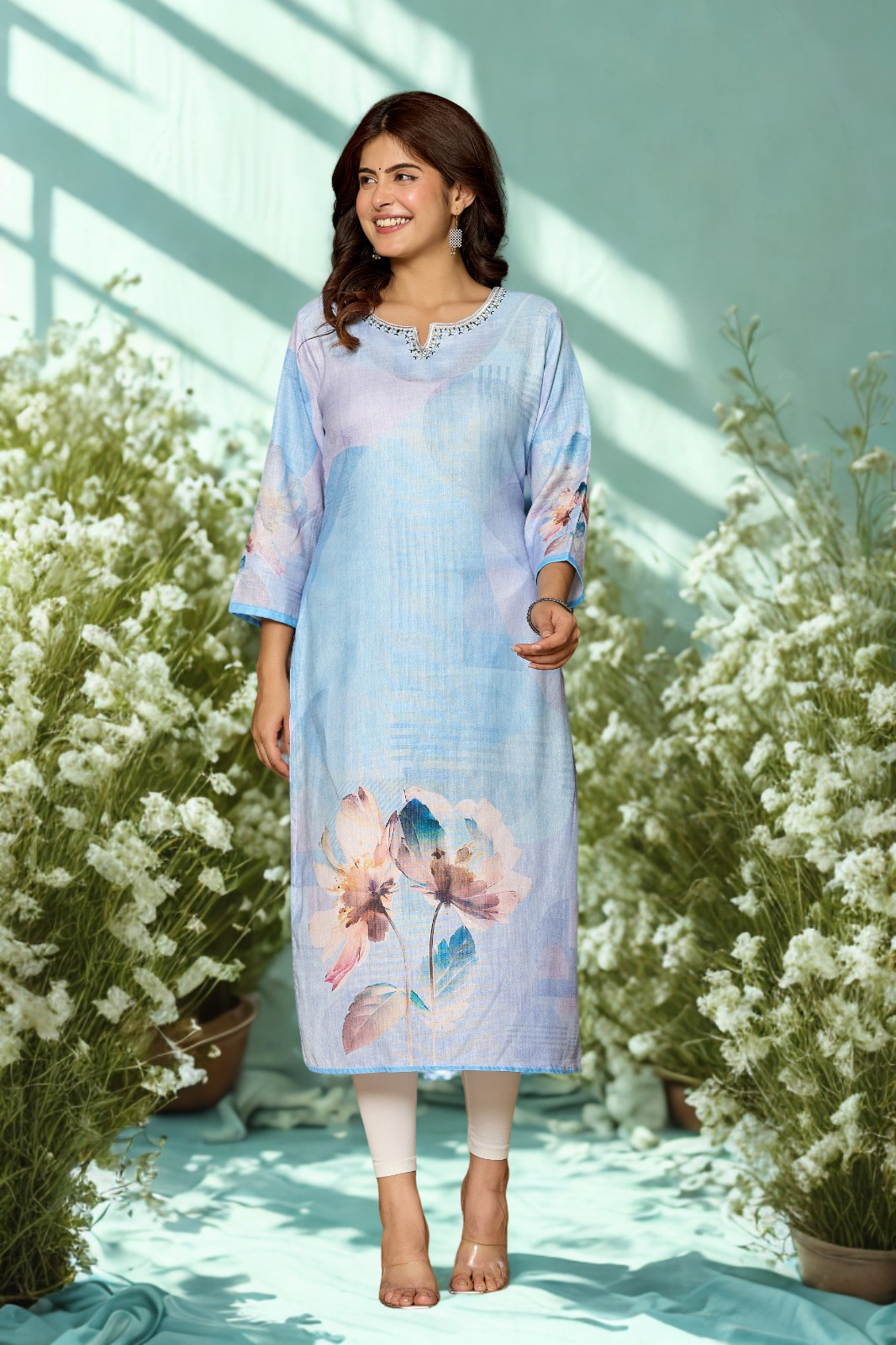 MRP-1050 SELL PRICE-756 SIZE M L XL XXL  FEBRIC-LILEN PETTERN -KURTI