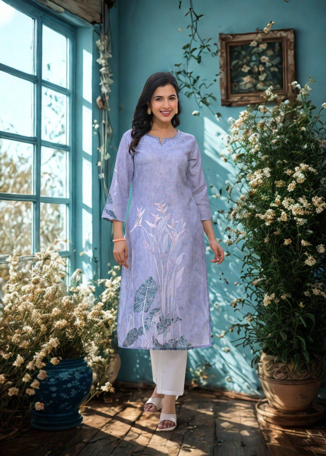 MRP-1050 SELL PRICE-756 SIZE M L XL XXL  FEBRIC-LILEN PETTERN -KURTI