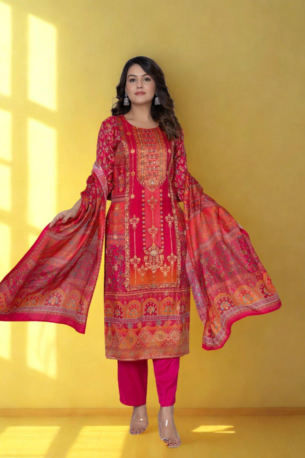 MRP-4050 SELL PRICE-2835 SIZE M L XL XXL SINGLE COLOUR FEBRIC-RUSSIAN SILK  PETTERN -SUIT SET WITH DUPATTA
