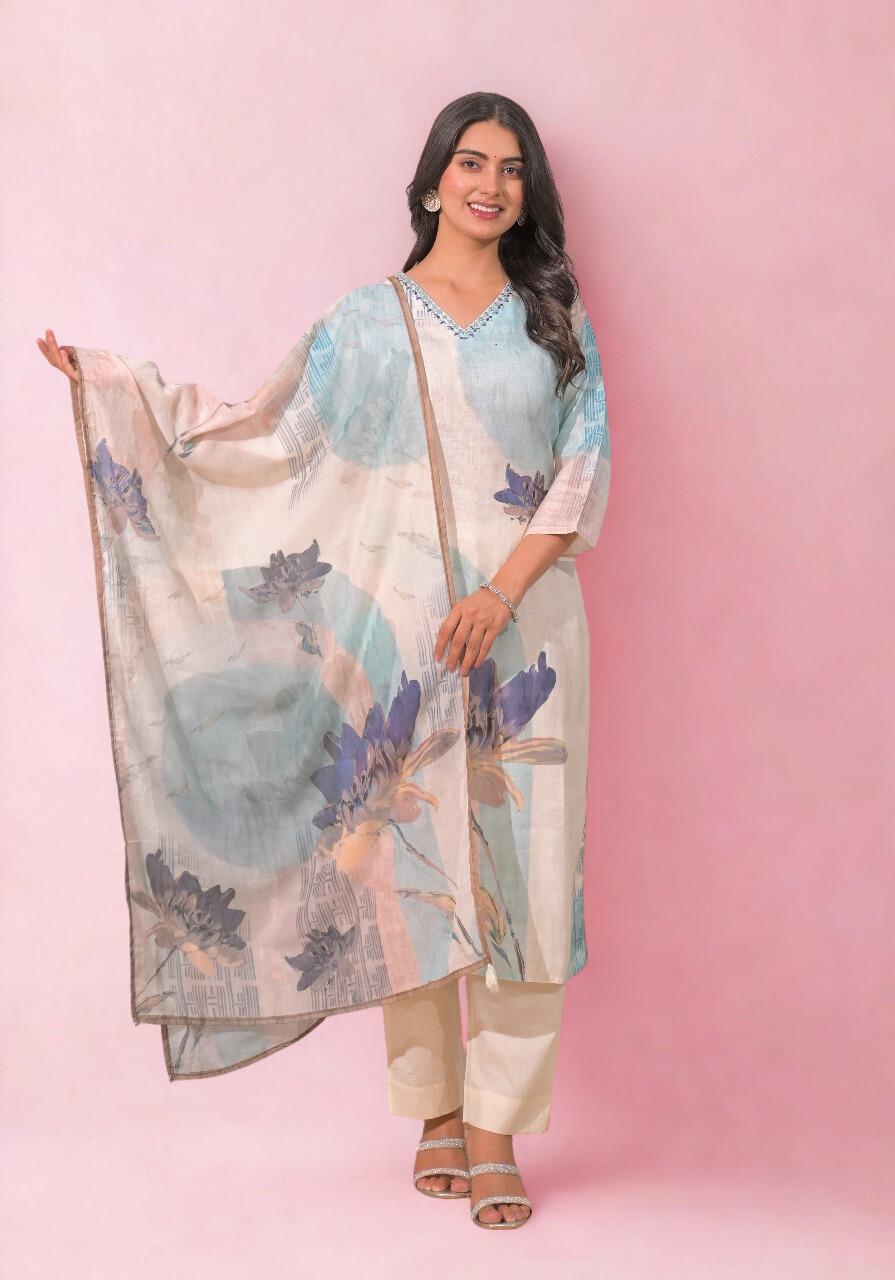 MRP-2050 SELL PRICE-1517 SIZE M L XL XXL TWO COLOUR FEBRIC-LILAN PETTERN -SUIT SET WITH DUPATTA