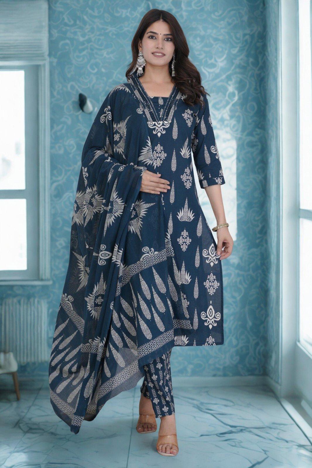 MRP-1830 SELL PRICE-1372 SIZE M L XL XXL 4 COLOUR FEBRIC-COTTON -SUIT SET WITH DUPATTA