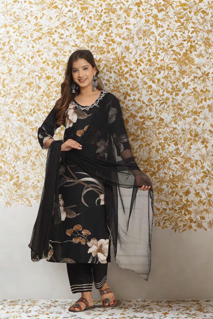 MRP-1290- SELL PRICE-903 SIZE M L XL XXL -SINGLE COLOUR FEBRIC- RAYON- PETTERN -SUIT SET WITH DUPATTA