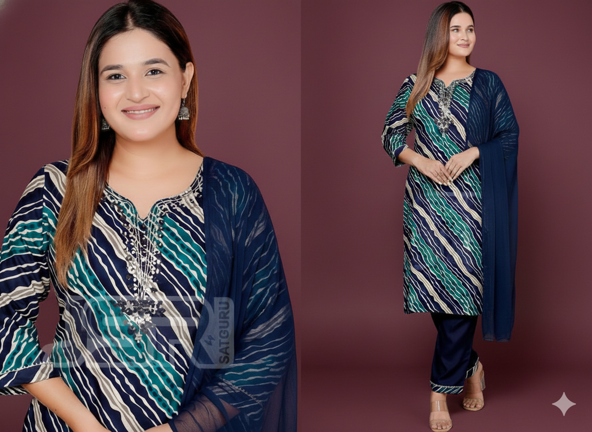 Set Includes: Designer Kurti, Matching Bottoms, and a Coordinating Dupatta.