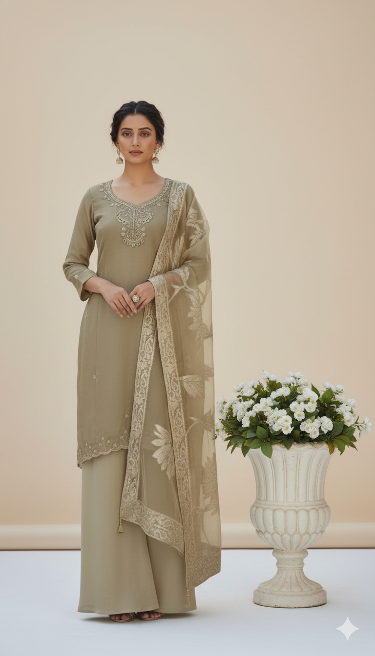 Set Includes: Designer Kurti, Matching Bottoms, and a Coordinating Dupatta.