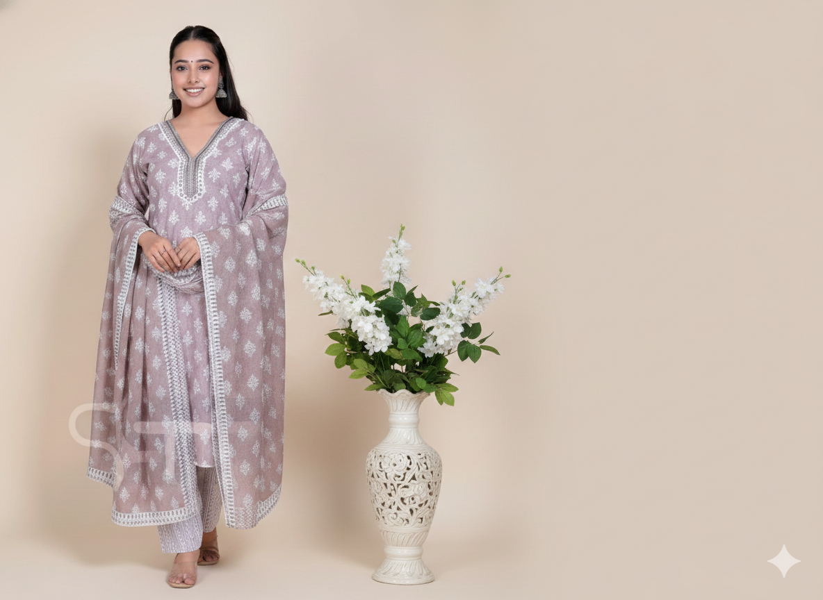 Set Includes: Designer Kurti, Matching Bottoms, and a Coordinating Dupatta.